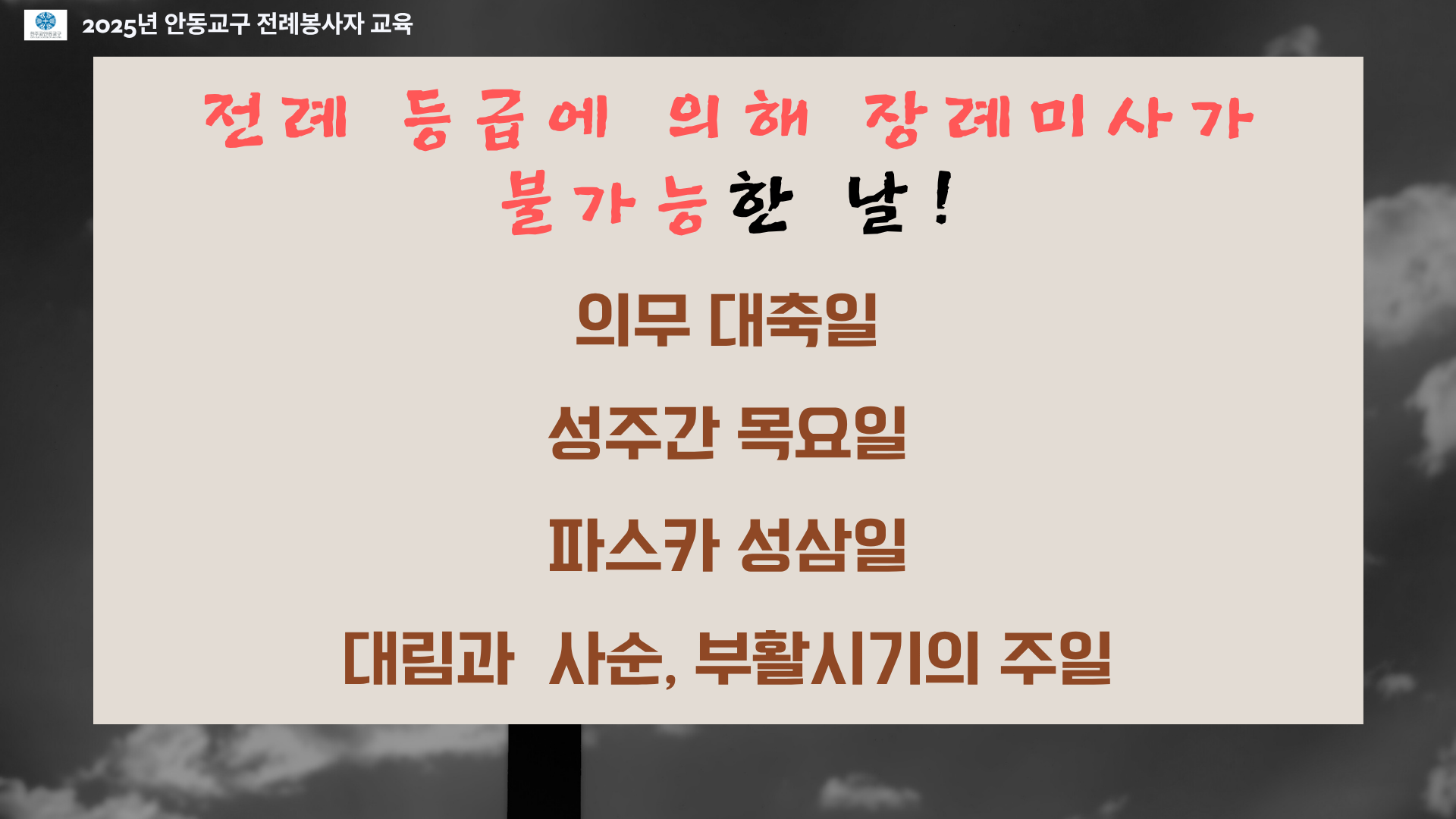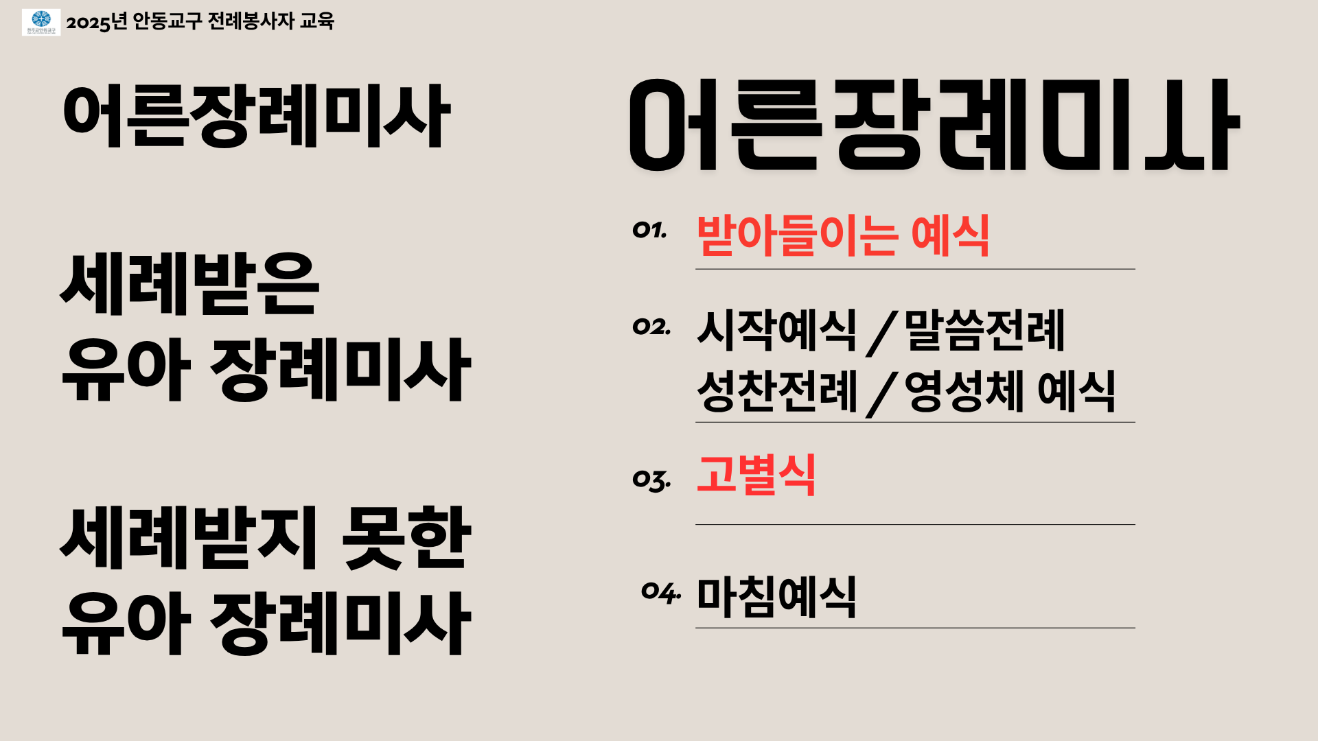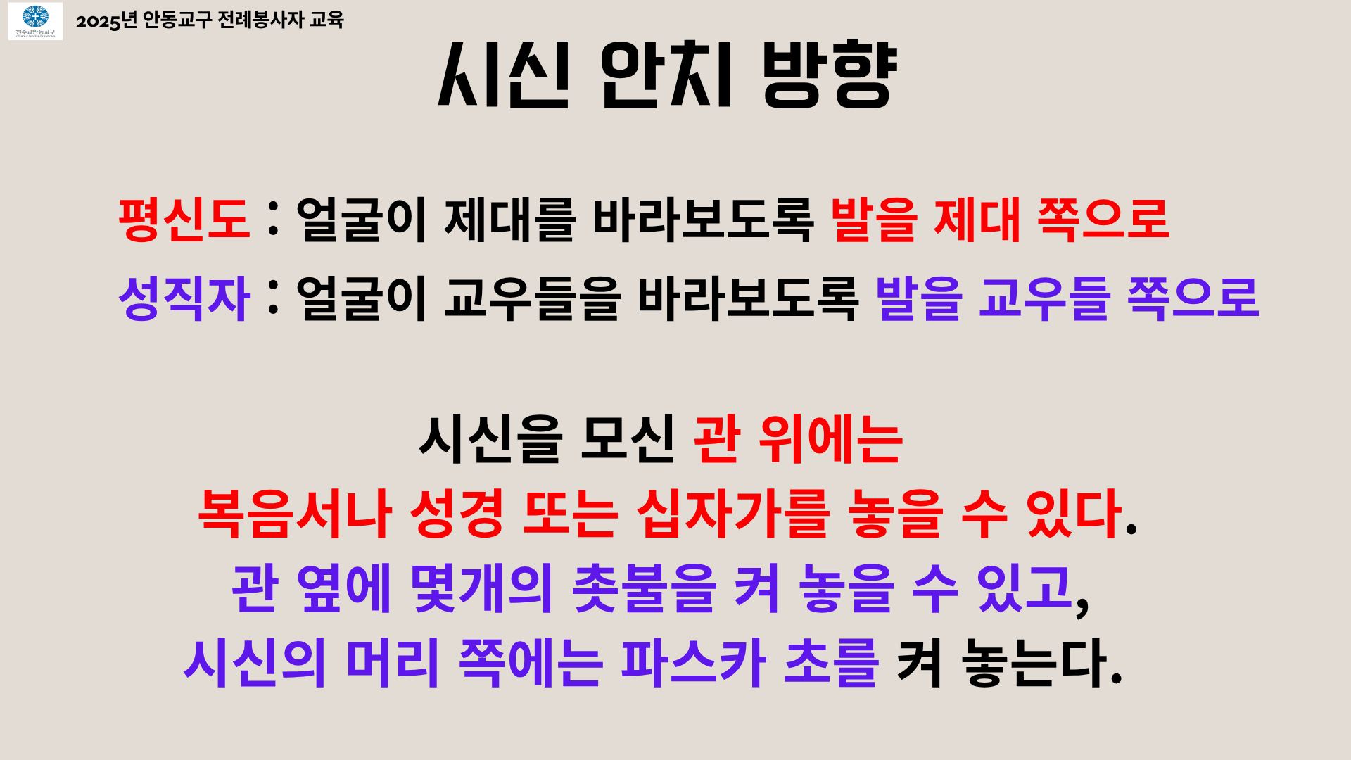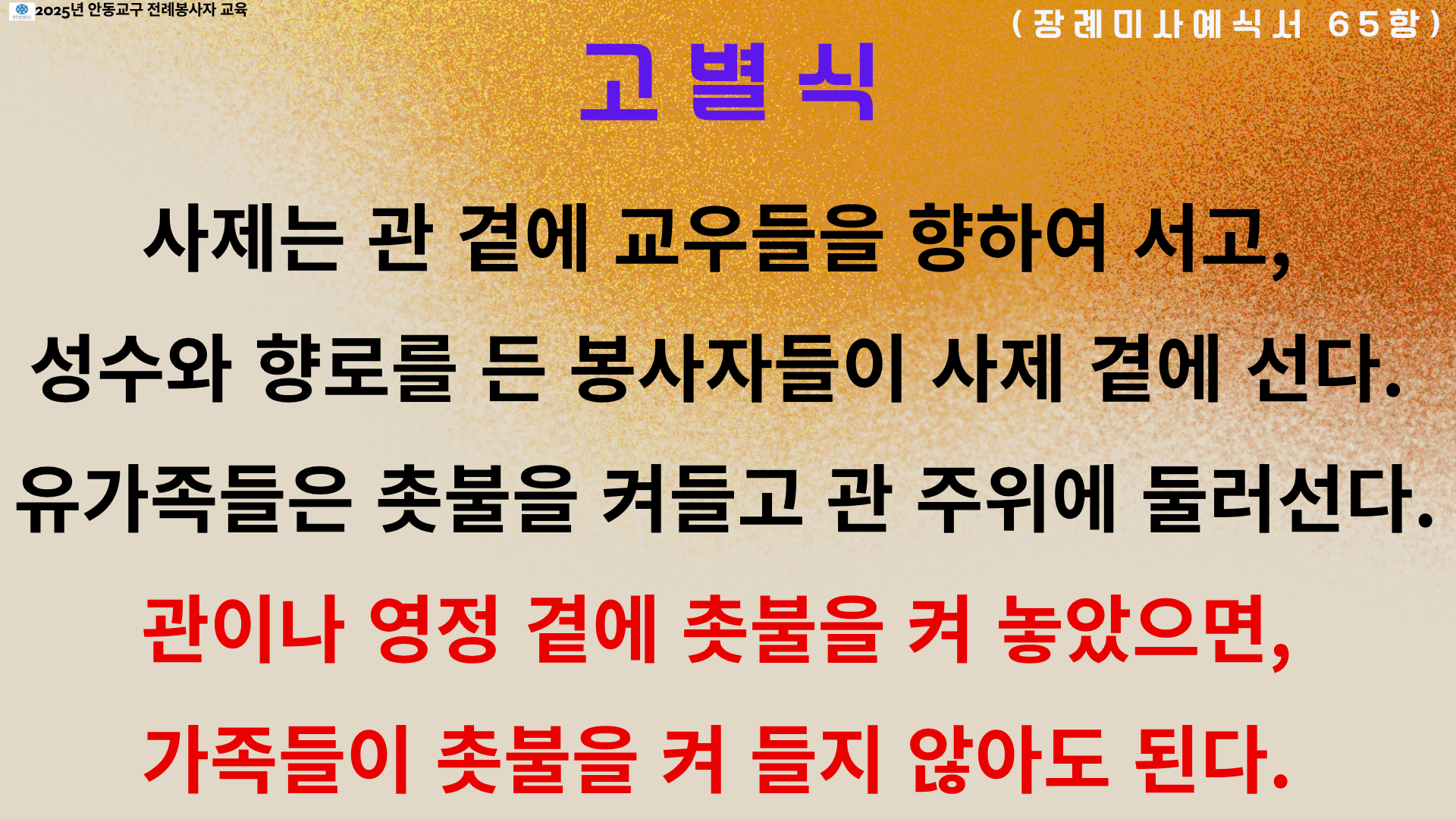 *본 사진자료는 2025년 10월 25일 복사단을 대상으로 한 장례미사 교육에 사용된 PPT 자료입니다.