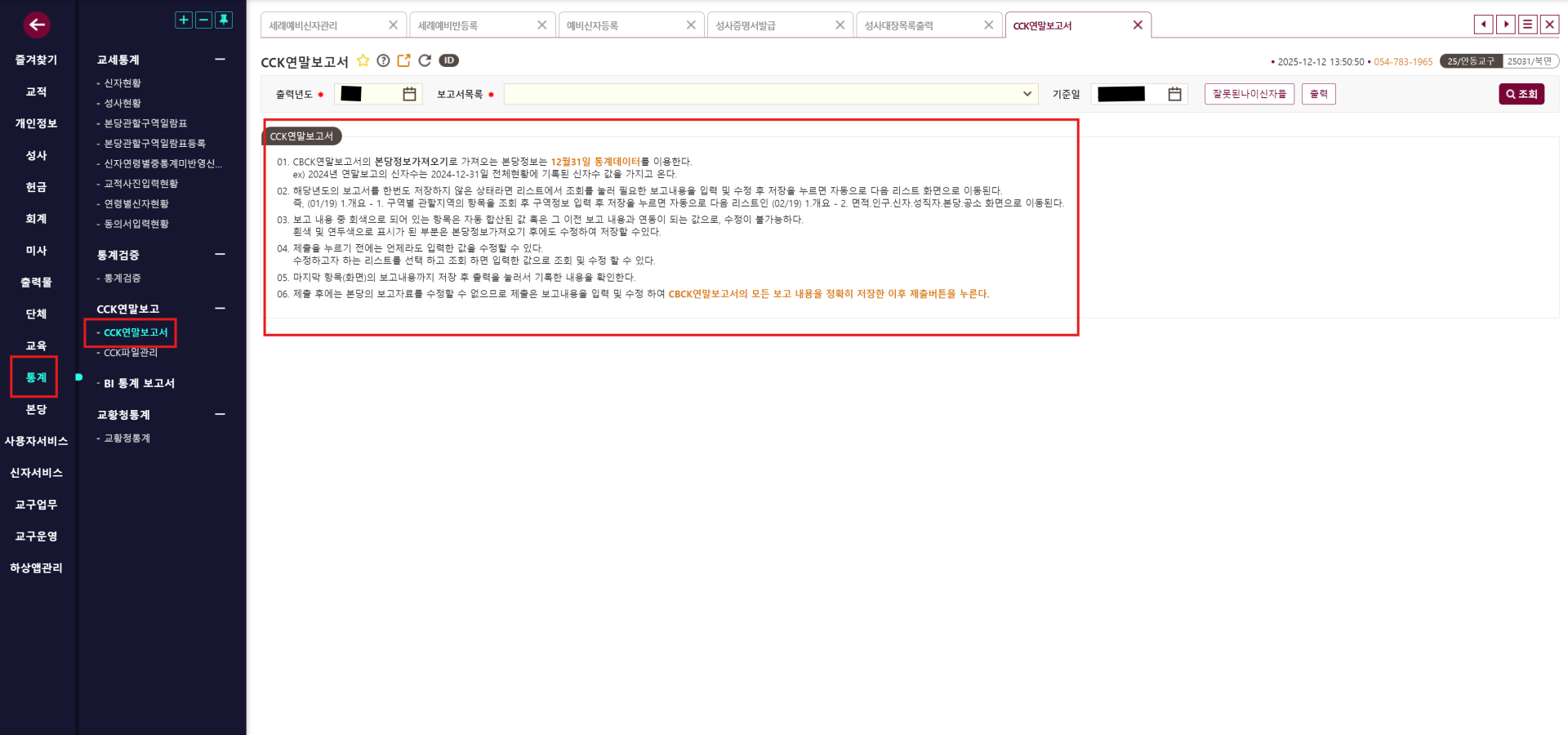 통계보고서 메뉴는 2025년 1월 1일 이후에 사용할 수 있습니다.