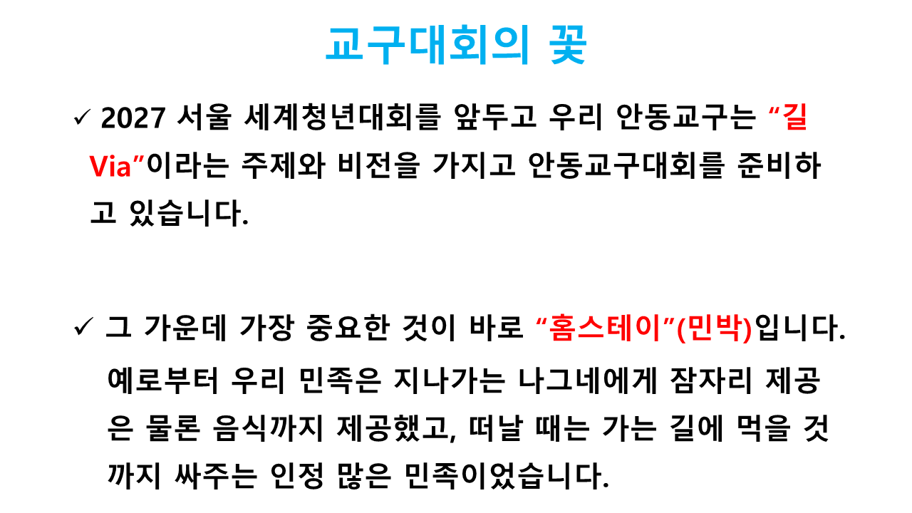 2027 서울 세계청년대회 안동교구대회 홈스테이 안내(2026.01.24 사목임원 및 제단체장 연수 교육자료)