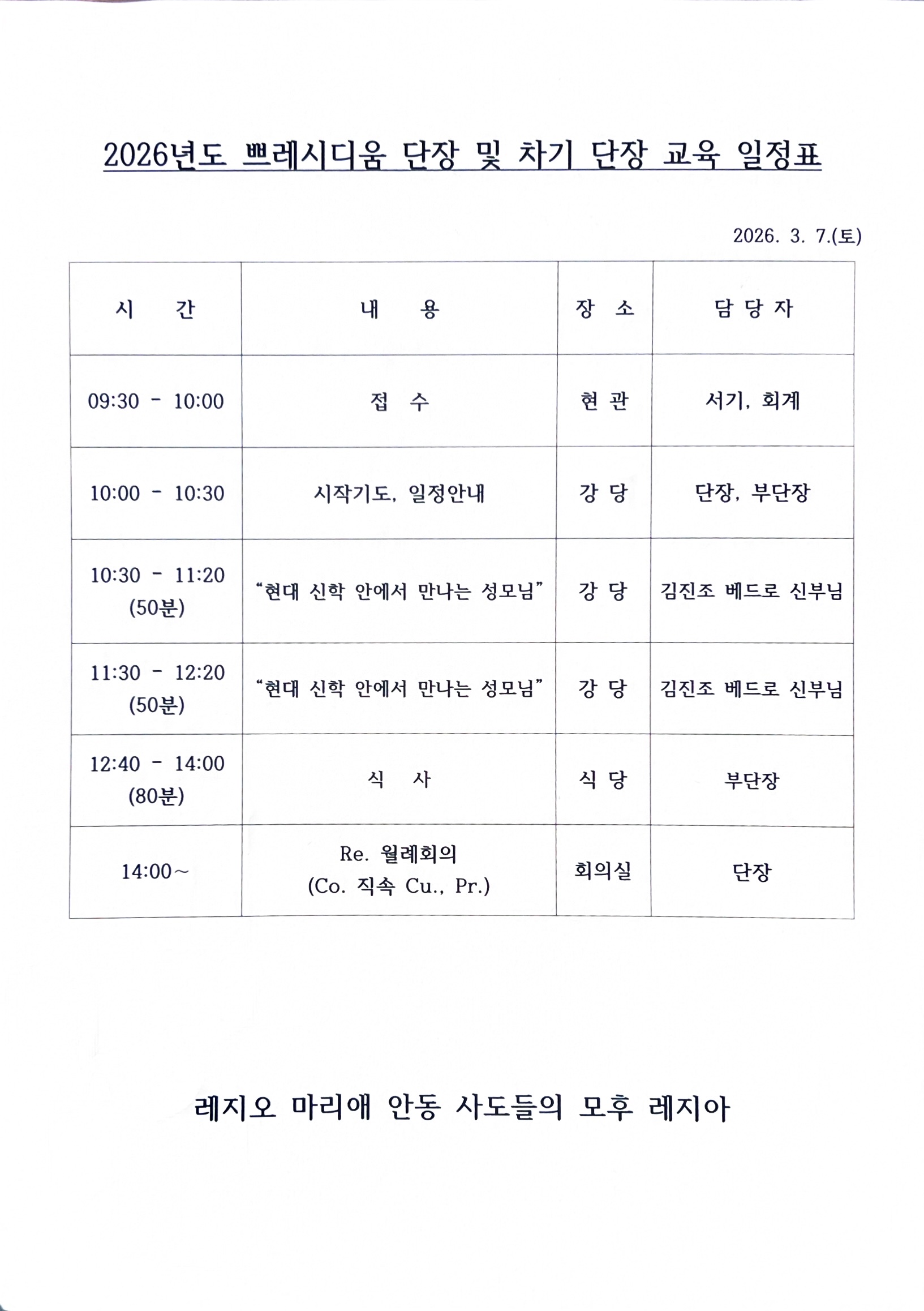 [사도들의모후 레지아] 쁘레시디움 단장 및 차기 단장 교육