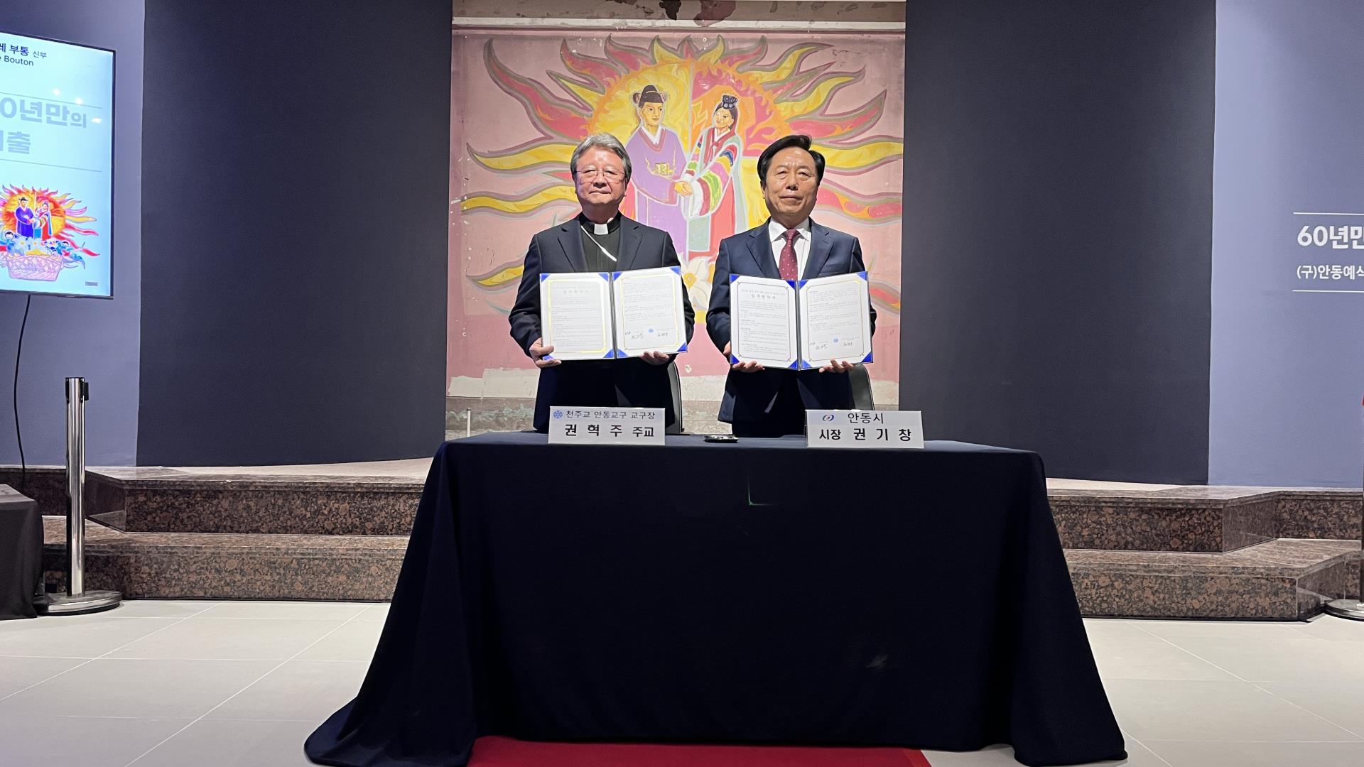 이 기념식은 앙드레 부통 신부의 벽화를 통해 지역사회에 가톨릭 문화를 널리 알리고, 지역의 새로운 명소가 되길 기대하며 마련된 행사입니다. 그리고, 앙드레 부통신부의 벽화가 근대문화유산으로 등재될 수 있도록 안동교구와 안동시가 함께 관심을 모으고 지속적으로 협력하기 위한 업무협약도 체결하였습니다.