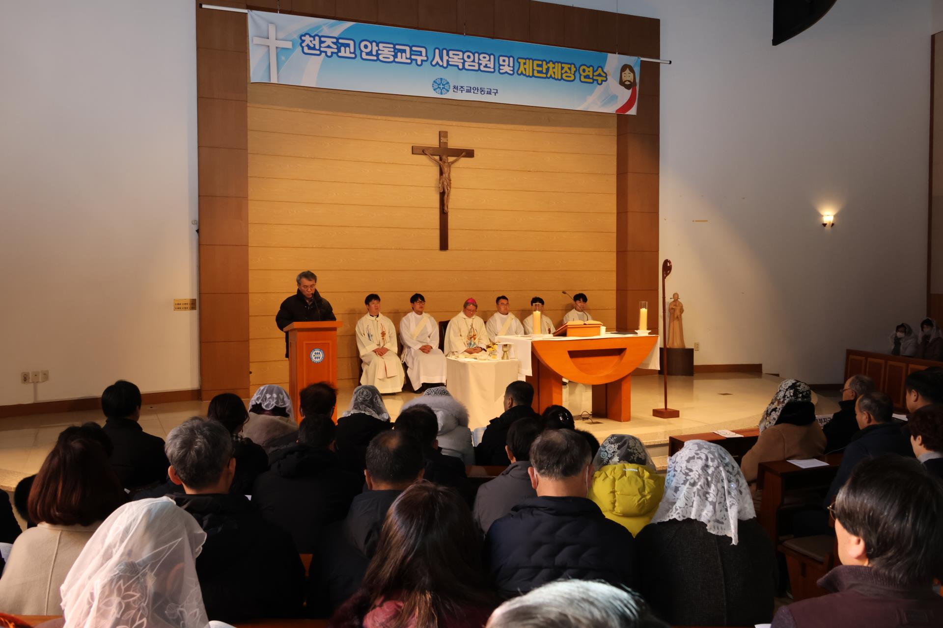 1월 24일(토) 가톨릭상지대학 두봉관에서 교구장 주교님 주례미사로 시작된 연수에는 32개 본당과 11개 제단체의 봉사자 224명이 참석하였습니다.