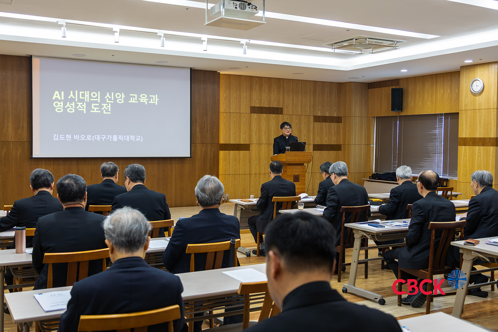 9일(월) 오후 3시부터 진행된 주교 연수에서는 ‘인공 지능(AI) 시대의 신앙 교육과 영성적 도전’를 주제로 김도현 신부(대구가톨릭대학교 교수)의 강의가 있었다.