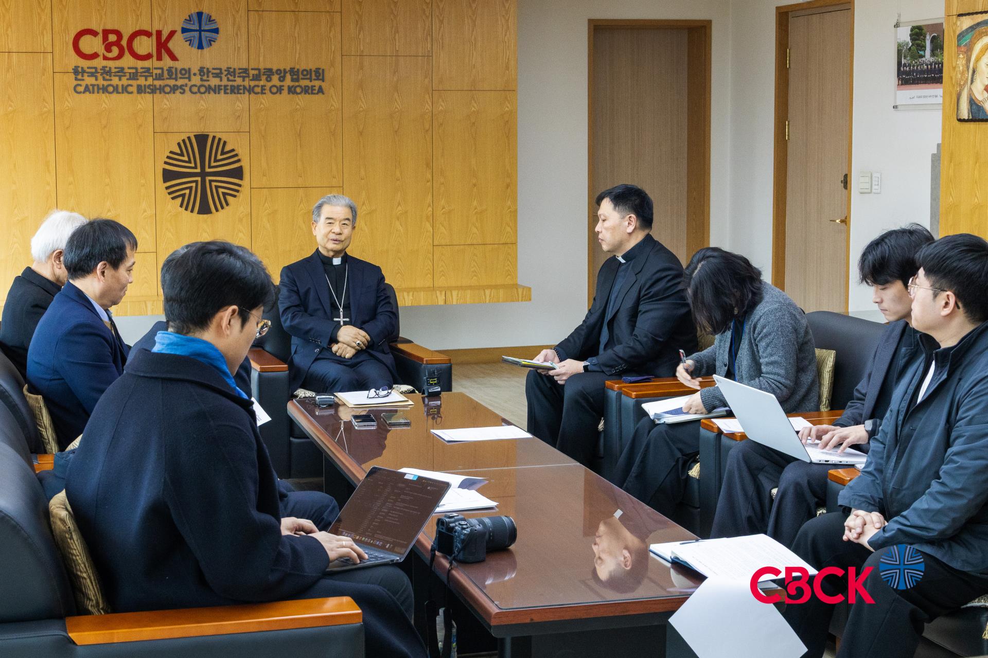 ▲ 2026. 3. 12. 의장 주교가 기자들에게 발언하고 있다.
