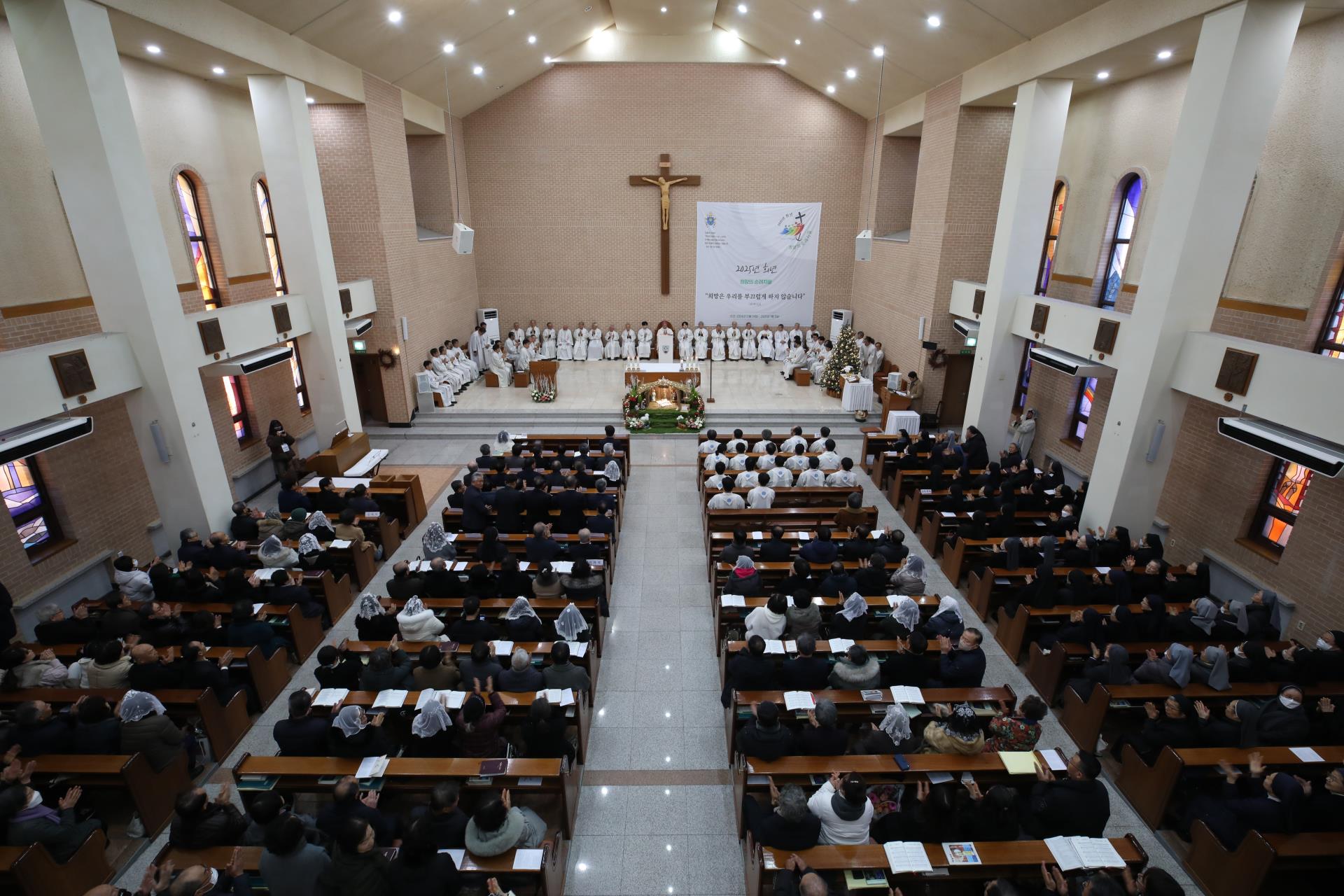 2026년 1월 2일(금), 교구 신년 인사회를 겸한 미사가 교구장 주교님 주례로 주교좌 목성동성당에서 봉헌되었습니다. 미사 중에는 올해 사목교서와 그 실천사항을 함께 이해하고 마음에 새기는 시간을 가졌으며, 교구 평협과 제단체, 그리고 새롭게 본당 사목회장으로 선출된 이들을 위한 임명장 수여식도 거행되었습니다. 새해를 맞아 복음의 길을 함께 걸으며 살아가고자 하는 우리 교구에 주님의 풍성한 축복이 가득하기를 기도합시다.