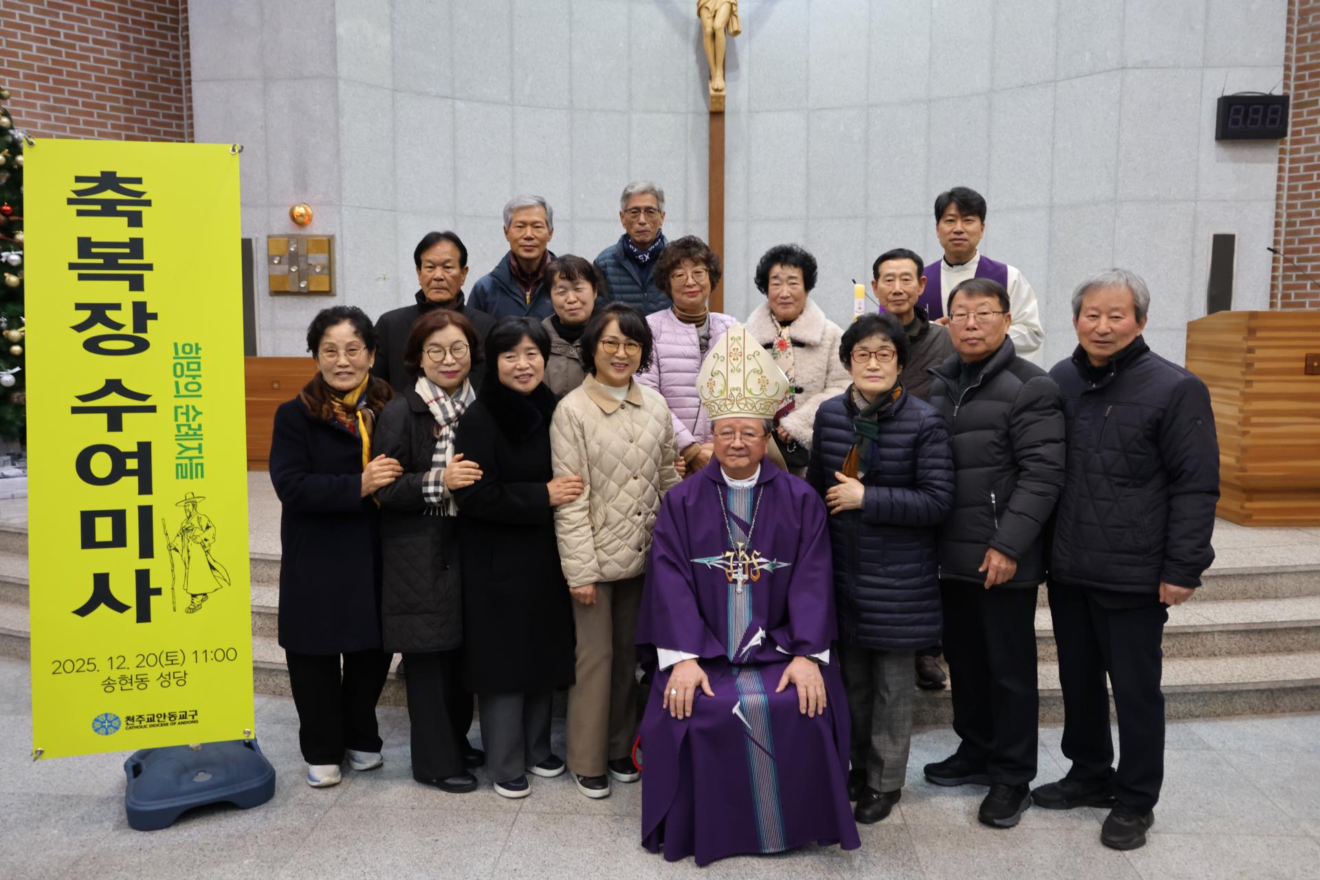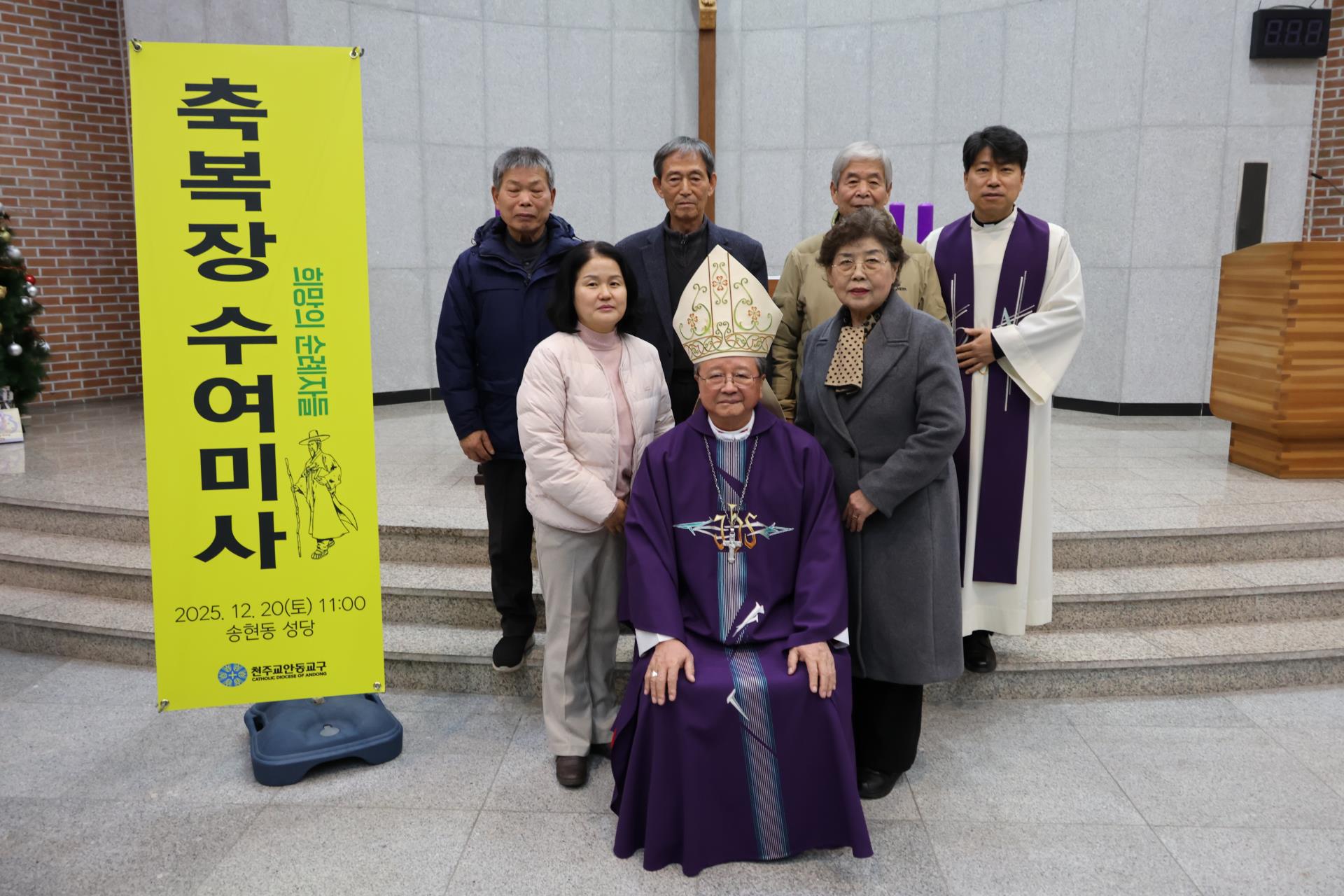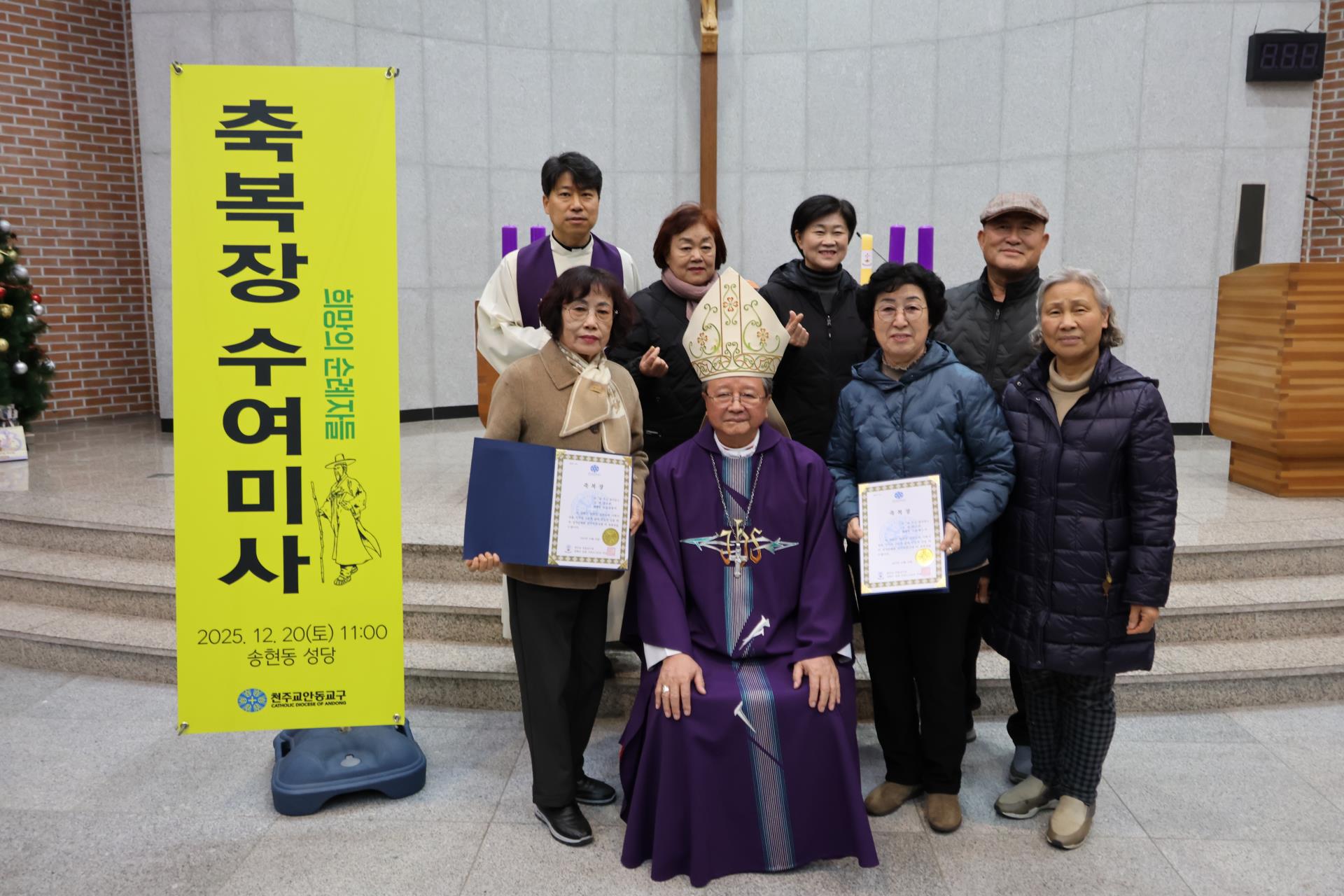 12월 20일(토) 안동 송현동 성당에서 올 한해 최양업 토마스 신부님의 시복시성을 기원하며 이루어진 성지순례 완주자 축복장 수여미사가 교구장 주교님 주례로 거행되었습니다. 순례 완주자는 239명이며, 당일 미사에는 155명이 함께 했습니다. 그 중에는 대구대교구(1명), 부산교구(5명) 신자도 있었습니다.
