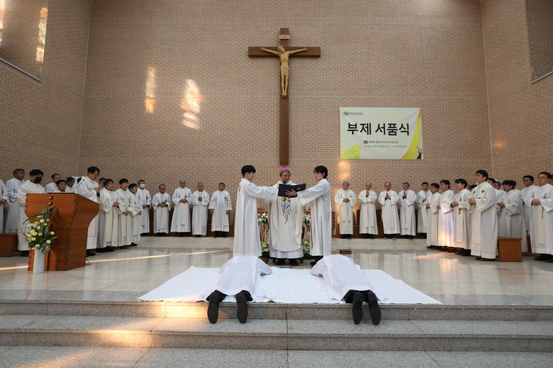 1월 11일(주일) 주교좌 목성동 성당에서 교구장 주교님 주례로 부제 서품식이 있었습니다. 주님의 복음 선포자로서 “읽는 것을 믿고 믿는 것을 가르치며 가르치는 것을 실천”할 수 있도록 기도를 부탁드립니다. 아울러 사제·수도 성소를 위한 지속적인 관심과 기도를 부탁드립니다.