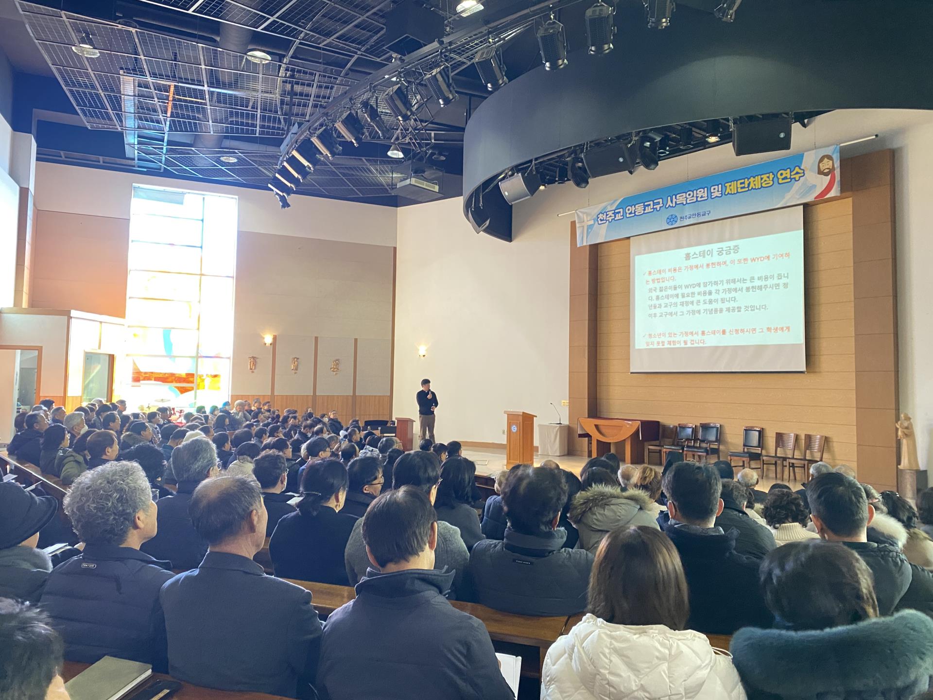 1월 24일(토) 가톨릭상지대학 두봉관에서 교구장 주교님 주례미사로 시작된 연수에는 32개 본당과 11개 제단체의 봉사자 224명이 참석하였습니다. 교구사목방향 및 실천사항 안내, 세계청년대회 홈스테이 안내, 제단체 소개 및 연간계획보고가 있었습니다. 교구와 본당의 모든 봉사자분들께 감사드리며 "함께 걸으며 복음을 살아갑시다!"