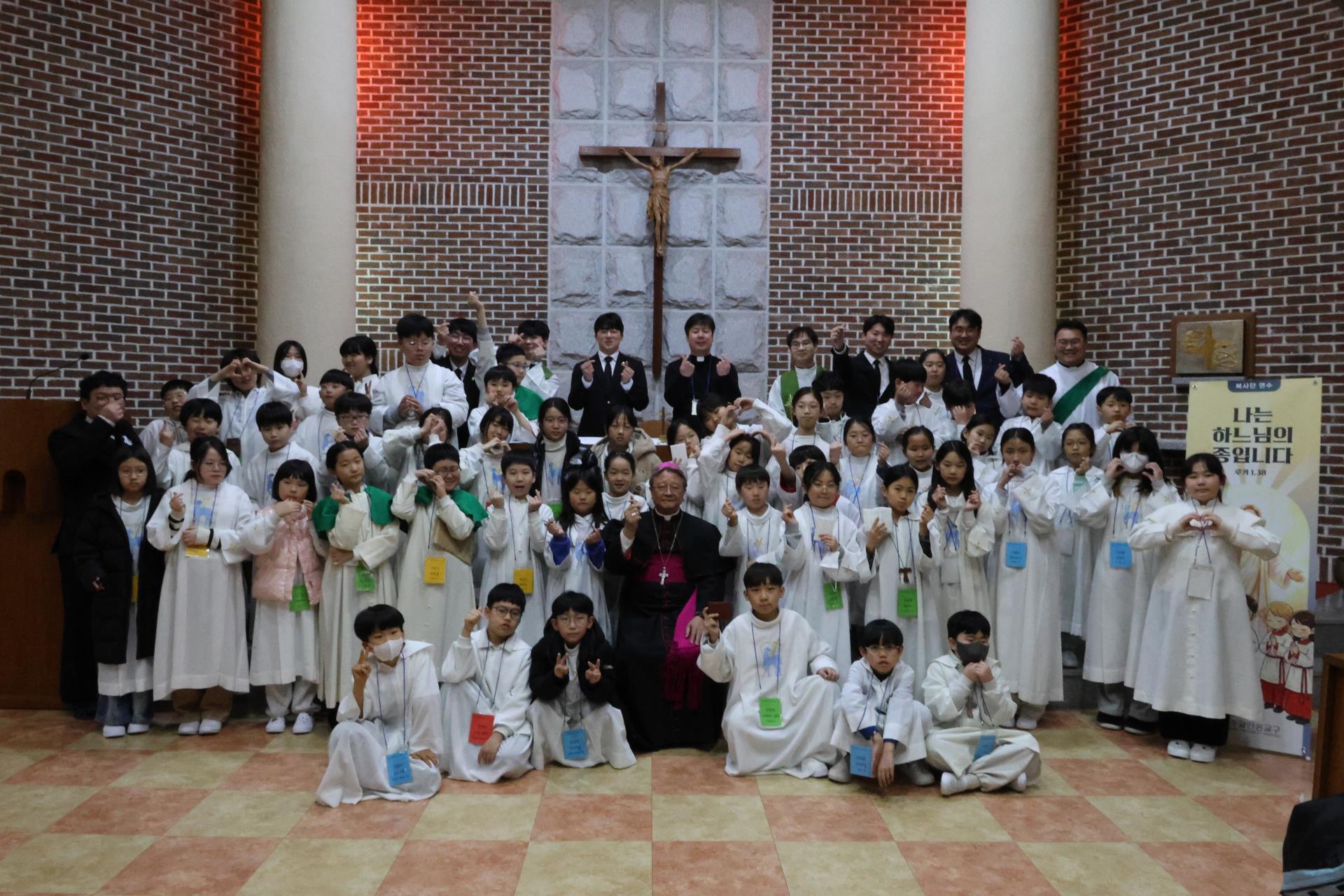 1월 31일(토) - 2월 1일(주일) 1박 2일 동안 농은수련원에서 초등부 복사단 연수가 진행되었습니다. 복사의 자세, 미사 전례, 제구와 제의, 전례력 등 다양한 프로그램을 통해 복사의 마음가짐과 역할을 익혔습니다. 아울러 자신의 다짐을 봉헌하고, 주교님의 축복을 받으며, 본당에 돌아가서도 열심히 전례에 참여할 것을 약속하는 시간을 가졌습니다. 신부님을 도와 주님의 제단에서 봉사할 52명의 신입 복사들을 위해 기도해 주세요.