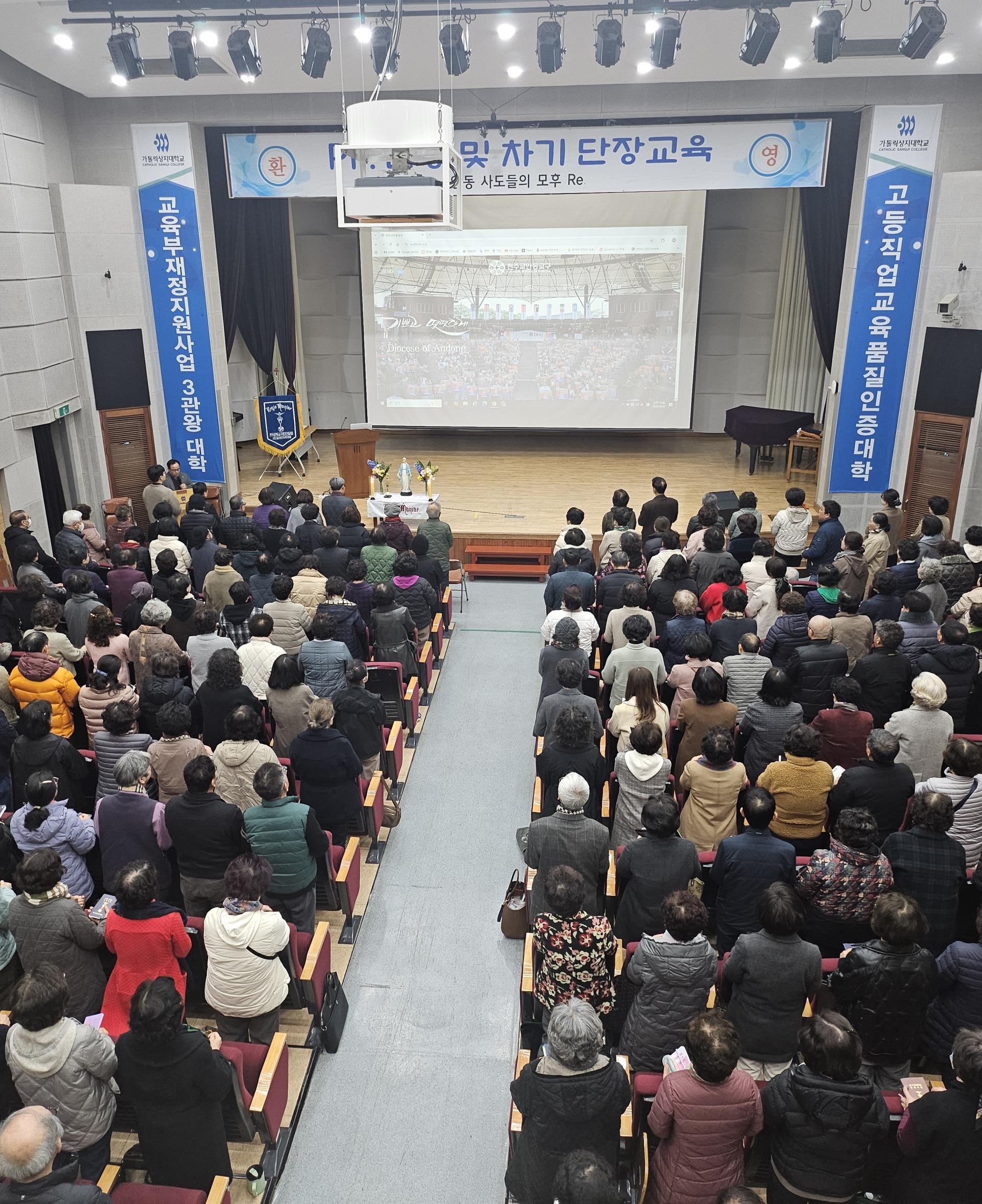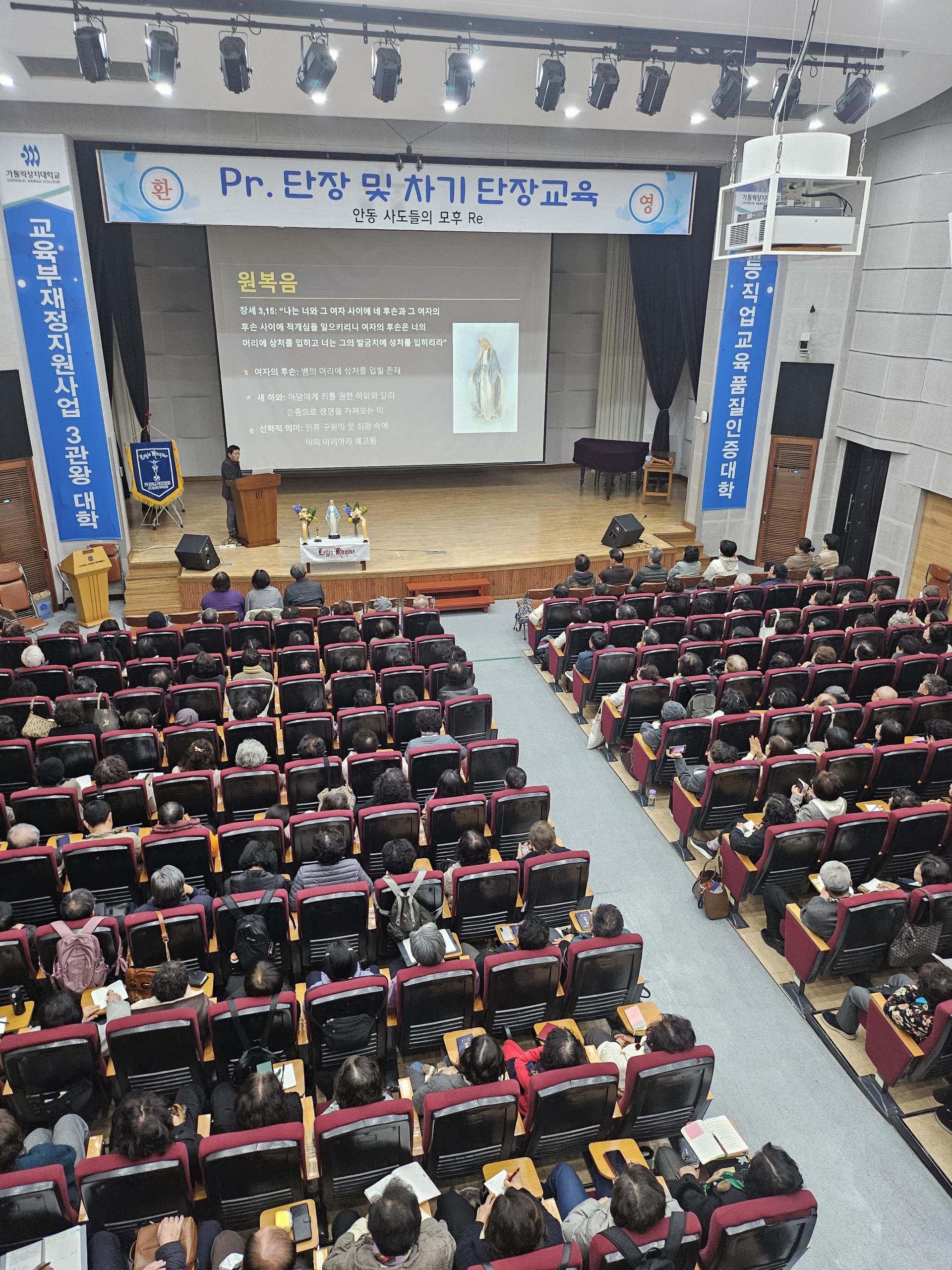 안동교구 사도들의 모후 레지아(단장 김우현 안드레아, 담당 사제 김종섭 갈리스도·김재형 베드로) 주관으로 2026년 쁘레시디움 단장 및 차기 단장 교육이 3월 7일 가톨릭상지대학교 소피아관에서 열렸다.
