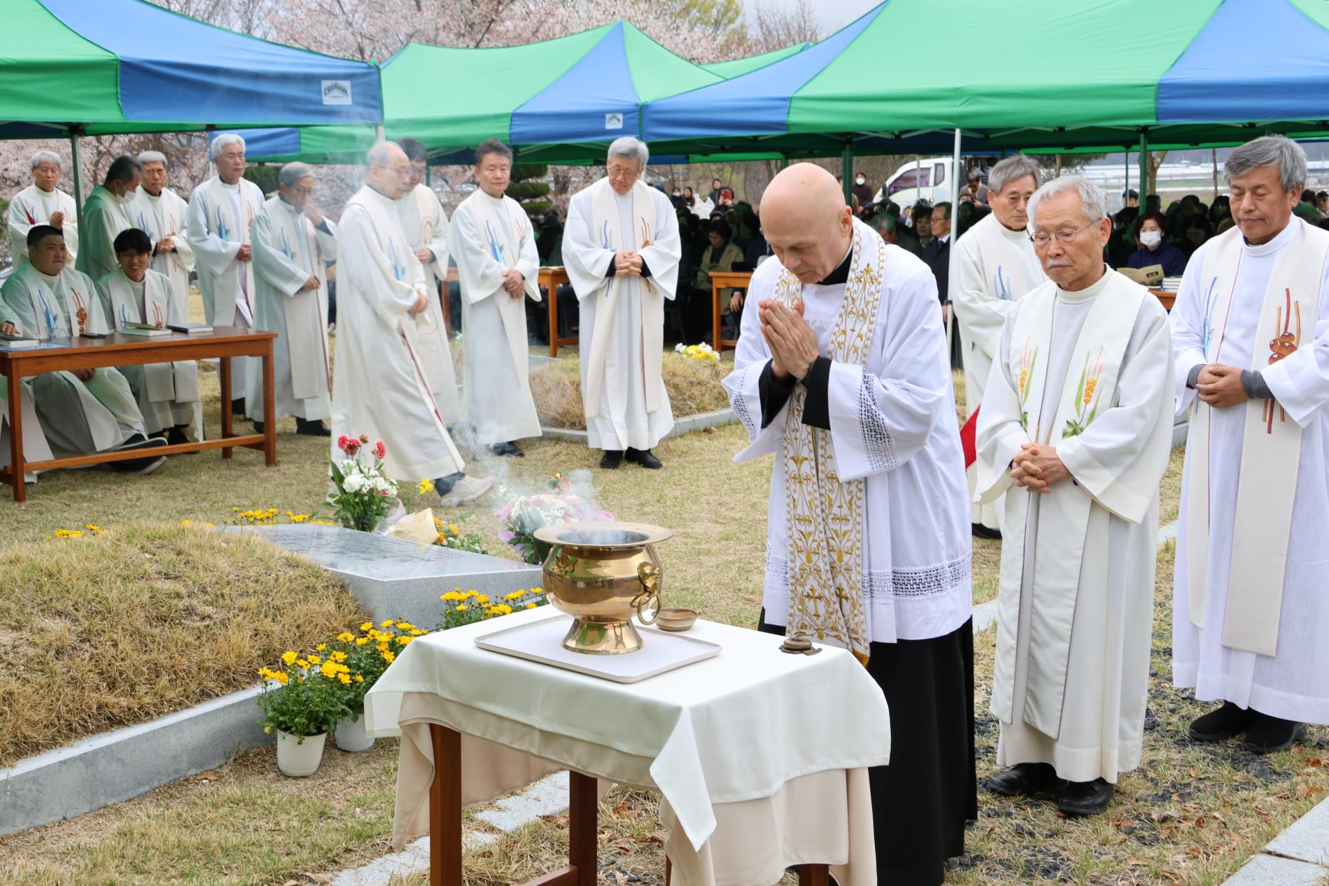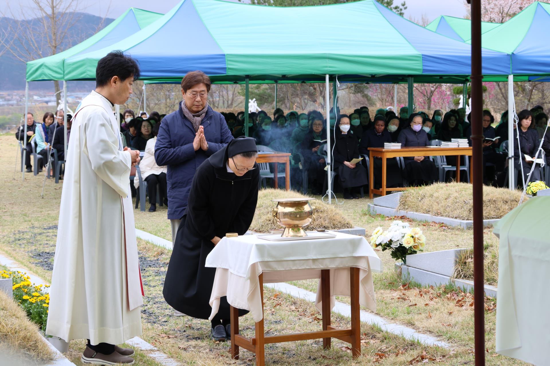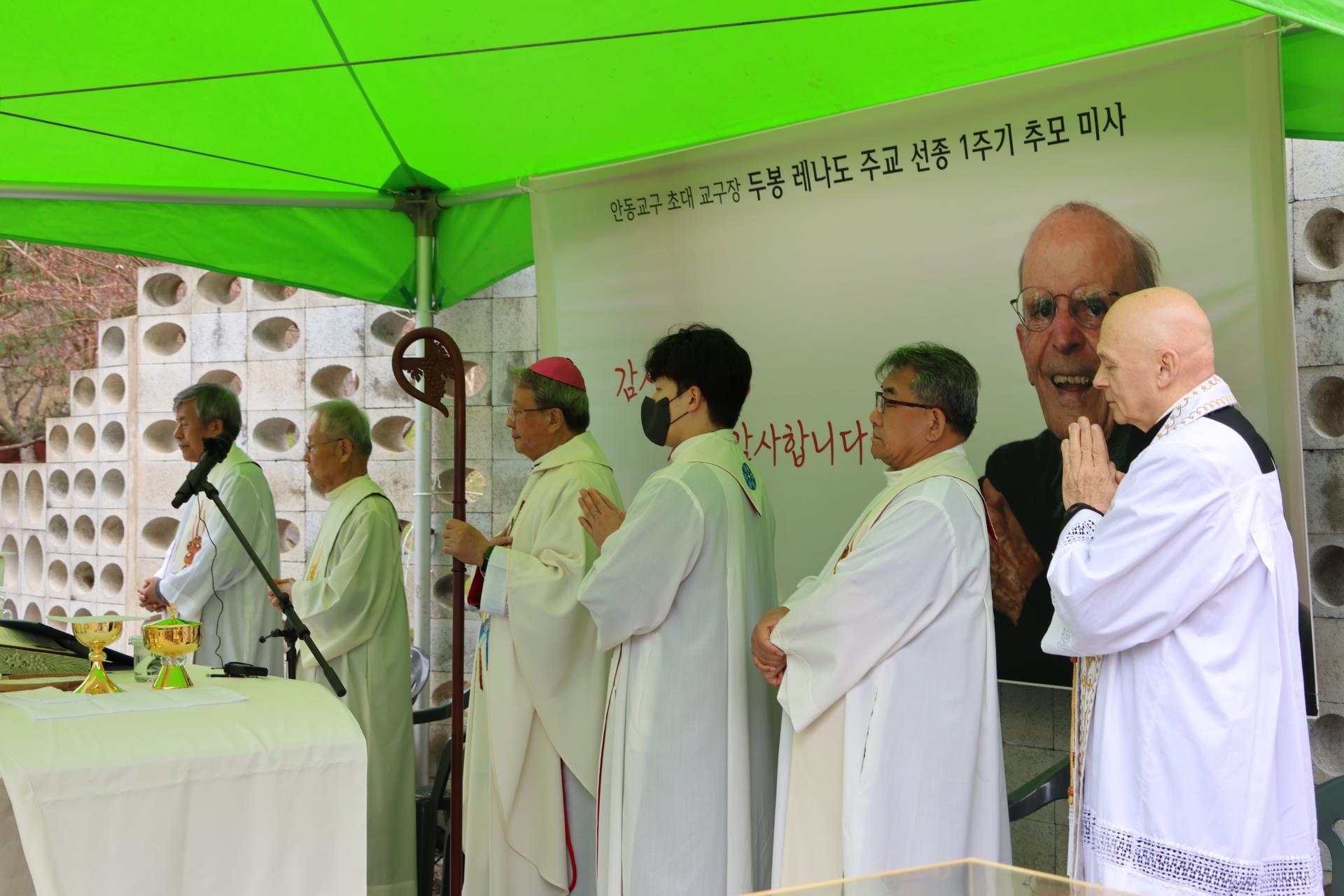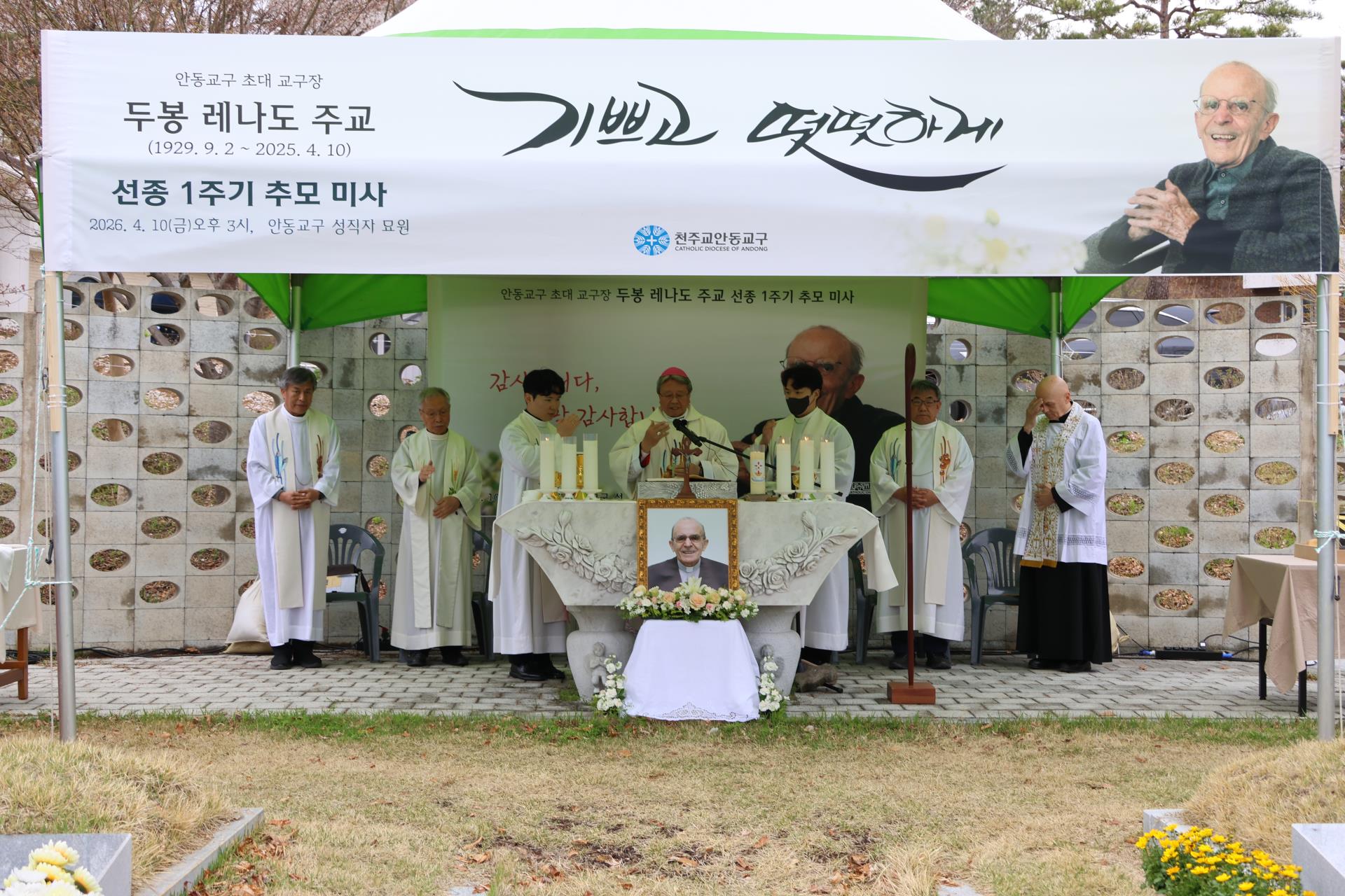 4월 10일(금), 농은수련원 내 성직자 묘역에서 교구장 주교님의 주례로 두봉 주교님 선종 1주기 추모 미사가 봉헌되었습니다. 교구 사제단과 수도자, 그리고 신자들이 함께 모여 주교님을 추모하며, 그분의 삶과 영성을 이어 살아가고자 다짐하는 뜻깊은 시간을 가졌습니다. 교구장 주교님께서는 강론을 통해 두봉 주교님의 뜻을 전하시며, “행복하게 살기 위해서는 남에게 행복을 주어야 합니다. 행복은 주어야 비로소 받게 되는 것입니다.”라고 강조하셨습니다. 아울러 교구에서는 의성군과 협력하여 “두봉 기념관” 건립을 추진중에 있습니다. 많은 관심과 기도를 부탁드립니다.