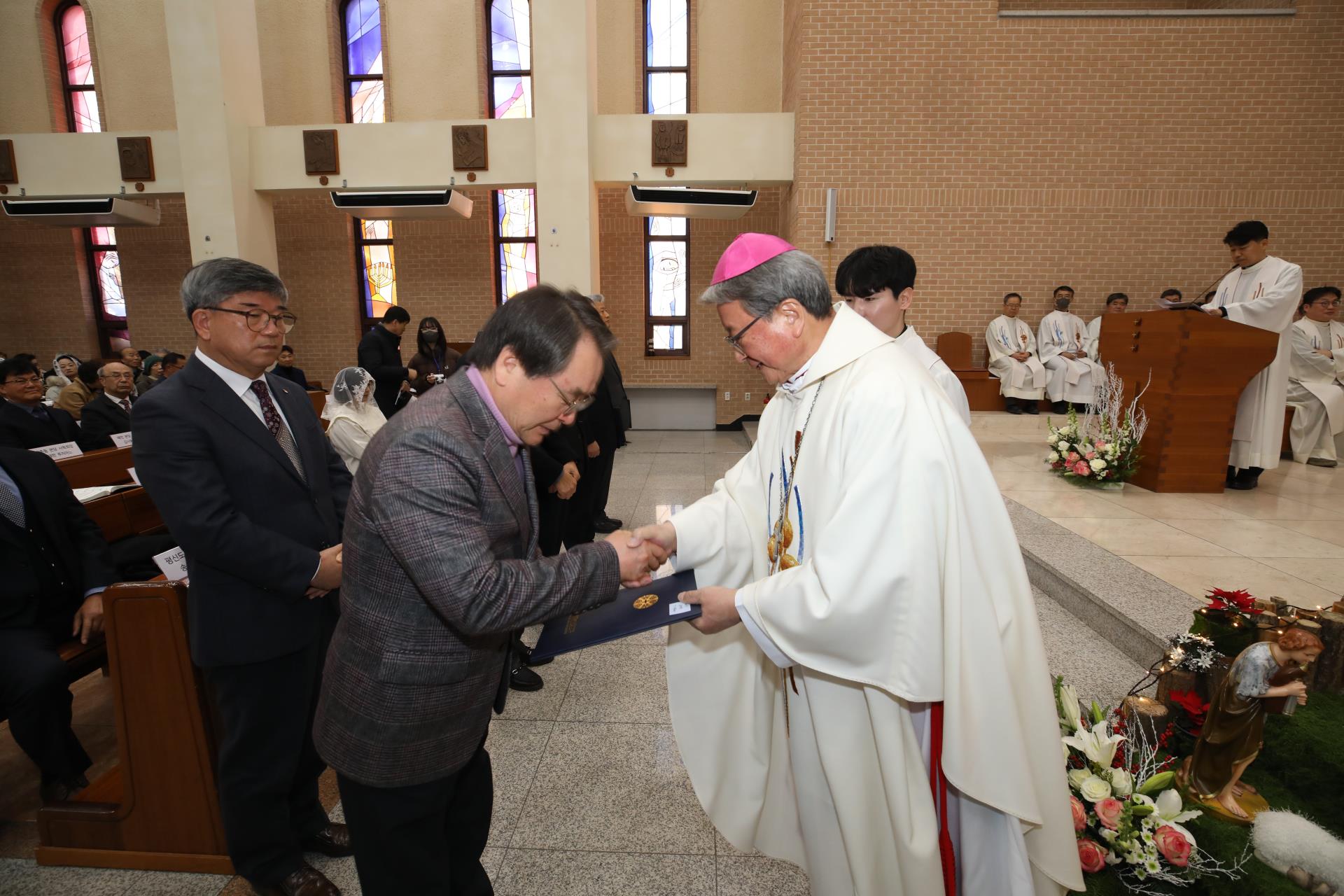 2026년 1월 2일(금), 교구 신년 인사회를 겸한 미사가 교구장 주교님 주례로 주교좌 목성동성당에서 봉헌되었습니다. 미사 중에는 올해 사목교서와 그 실천사항을 함께 이해하고 마음에 새기는 시간을 가졌으며, 교구 평협과 제단체, 그리고 새롭게 본당 사목회장으로 선출된 이들을 위한 임명장 수여식도 거행되었습니다. 새해를 맞아 복음의 길을 함께 걸으며 살아가고자 하는 우리 교구에 주님의 풍성한 축복이 가득하기를 기도합시다.