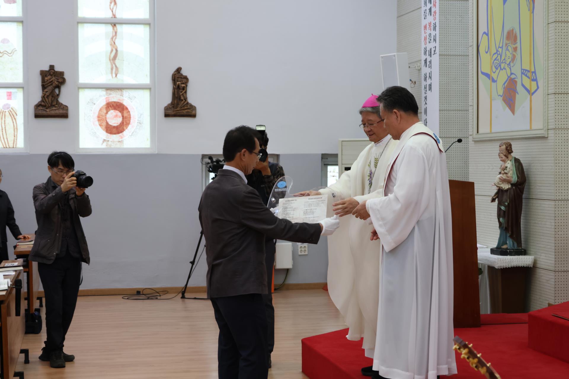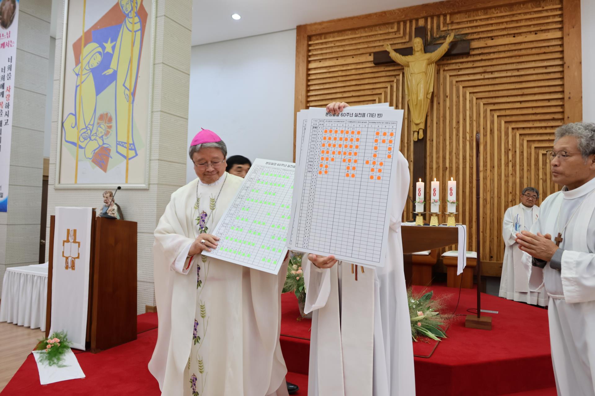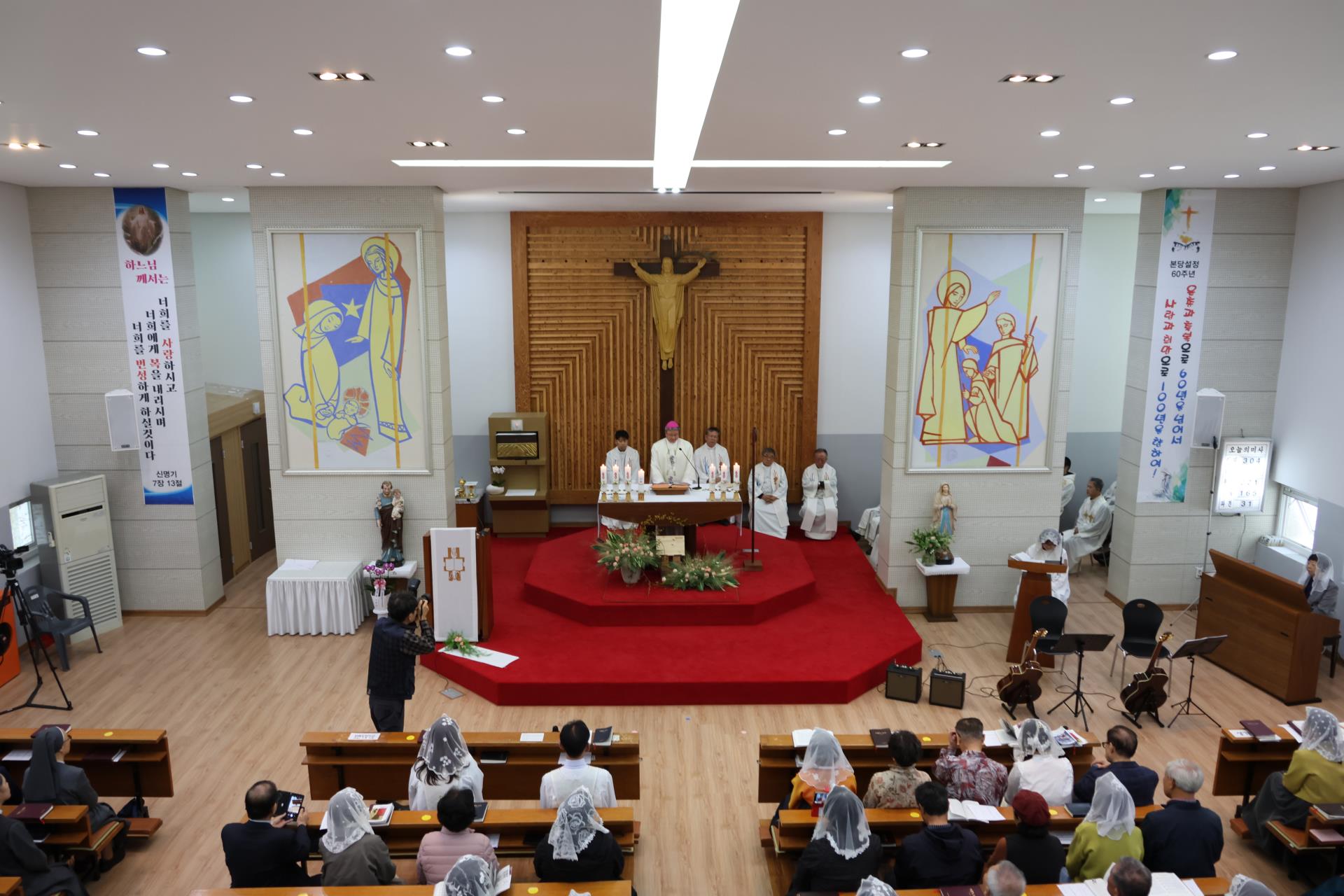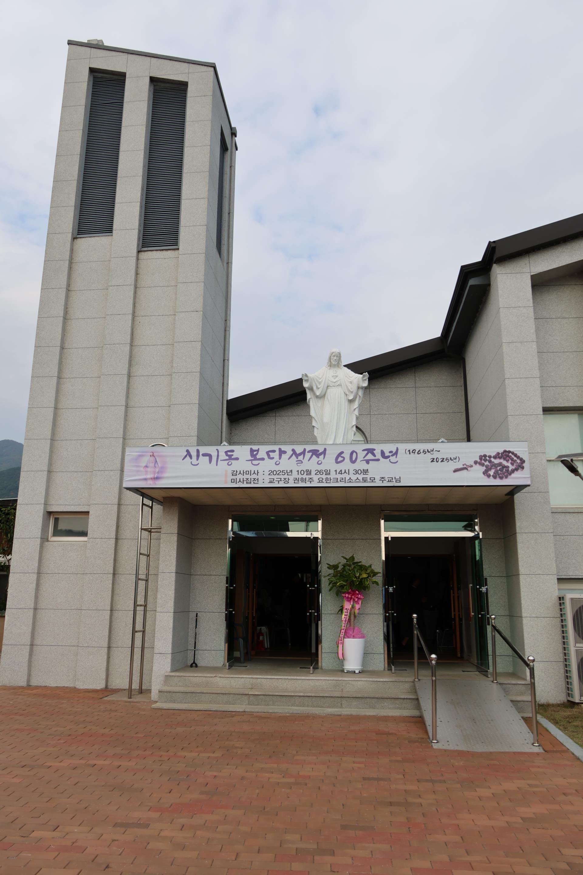 10월26일(주일) 교구장 주교님 주례로 문경 신기동 성당 설립 60주년 감사미사가 봉헌되었습니다. 지난 60년간 본당 공동체에 베풀어 주신 주님의 은총에 감사드리는 뜻깊은 자리에는 교구 사제단과 많은 수도자, 신자분들이 함께 해 주셨습니다. 무엇보다 작고 소박한 신기동 성당 공동체가 더욱더 기쁘고 떳떳하게 하느님 나라를 일구어 가도록 많은 기도 부탁드립니다.