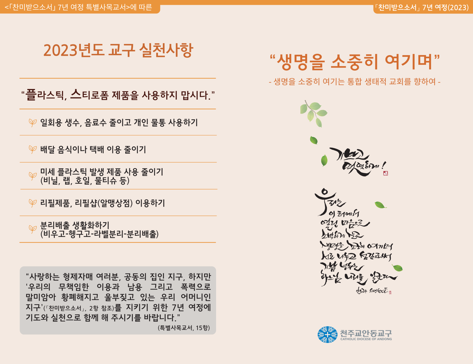 [2023년] 생명을 소중히 여기며 (생명을 소중히 여기는 통합 생태적 교회를 향하여)