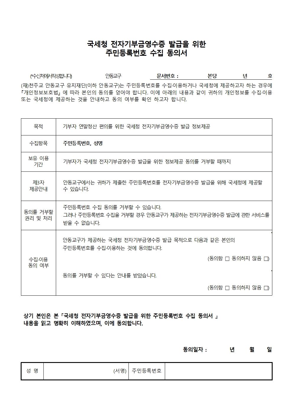 [관리국] 전자기부금영수증 주민등록번호 수집 동의서